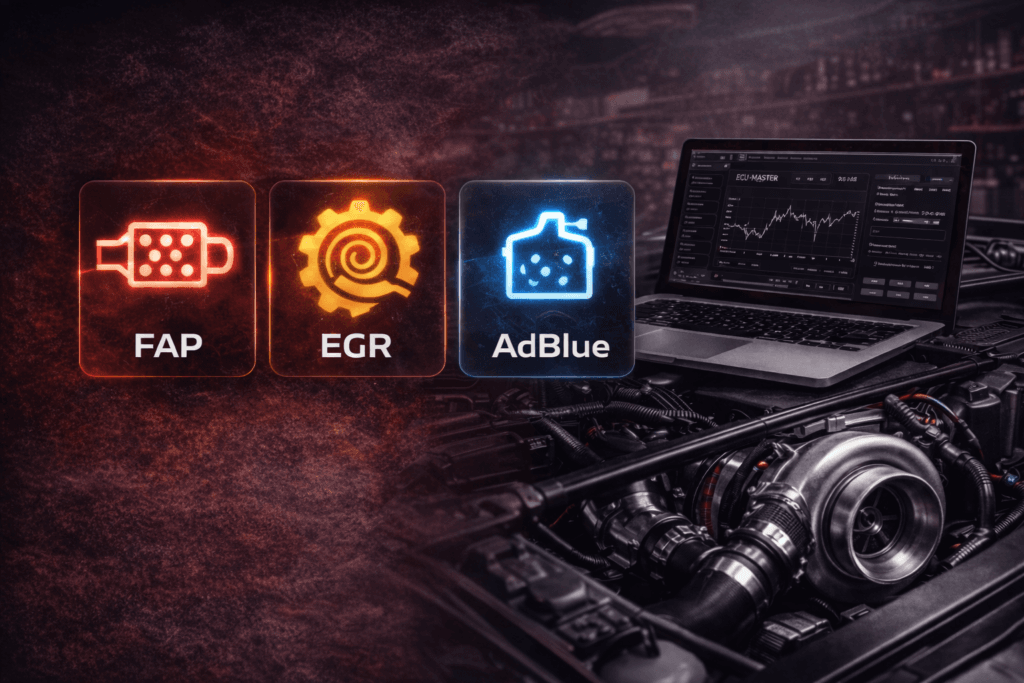 Nos prestations incluent la reprogrammation moteur Stage 1, Stage 2 et Stage 3, la conversion éthanol E85 FlexFuel, le diagnostic électronique automobile ainsi que des solutions pour les systèmes EGR, FAP et AdBlue.